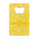 Elegant Monogram Name Leaf Daisy Pattern Yellow Credit Card Bottle Opener