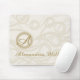 Elegant Monogram Name Linen Swirl Pattern Mouse Pad