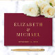Elegant burgundy red wedding guest book featuring your names in large classic serif typography and your wedding date monogrammed in your choice of real gold, silver or rose gold foil. Personalize with your photo on the back and a custom title on the spine.