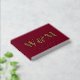 Elegant burgundy red wedding guest book featuring your choice of real gold, silver or rose gold foil, your monogram initials in large classic serif typography, your first names and your wedding date. Personalize with your photo on the back and a title on the spine.