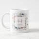 Elegant Monogram Pretty Beige Blue Flowers Floral Large Coffee Mug