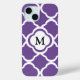 Elegant Monogram Purple Pattern iPhone 15 Case.