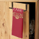 An elegant and chic red and gold flourish monogram Christmas kitchen towel. Add your name between the gold floral flourish on the front. Designed for you by Blackberry Boulevard.