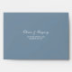 Simple wedding RSVP self addressed envelope featuring an elegant and timeless design with your names in an elegant calligraphy along with your return address in a serif font over Weldon blue colour. Inside is a faux glitter in the same shade. A clean and classic design perfect for a traditional wedding invitation suite with a modern touch. These pre-addressed RSVP envelopes are a great time saver and will elevate the look of your invitation suite.