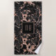 Elegant Monogram Rose Gold Black Marble Beach Towel