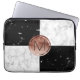The sleeve is made of nice feeling material and seems very durable. I'm not sure how easy it'll be to clean, but the construction seems sound and the fabric is quick thick. I also like the double zipper. The printing is lovely and appears durable. The white on black contrast is nice, and the design very elegant.