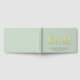 Elegant sage green wedding guest book featuring your choice of real gold, silver or rose gold foil, your monogram initials in large classic serif typography and your names joined together by a heart. Personalize additional text on the spine.