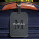 Elegant Monogram Script Black Brushed Metal Luggage Tag