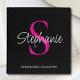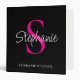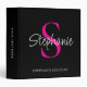 This personalized black binder features elegant pink script typography and is easily customizable.