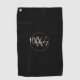 Simple elegant black gold and white script monogram golf towel. You can personalize the name, monogram and customize the font and colours to create your own unique design. Designed by Thisisnotme©