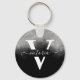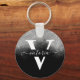 Elegant Monogram Silver Glitter Girly Black Custom Keychain