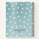 An elegant blue metallic background with white polka dots decorates this notebook. Other colours available. Personalize it with your name on the front and back. Makes a great gift. Designed for you by Blackberry Boulevard.
