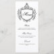 Add a refined touch to your reception tables with this elegant wedding menu card featuring a classic crest design. The ornate decorative frame creates a sophisticated focal point while the graceful “Menu” headline and structured layout present each course with timeless style.