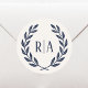 Add the finishing touch to your wedding stationery with monogram stickers. This elegant design features a simple laurel wreath framing the couple's initials. Inspired by 1920s invitations, it blends classic formality with modern flair, using a traditional serif font, and a clean arrangement. Perfect for envelope seals or attaching ribbons, cards and tags to your thank you favours. Round stickers. Printed colours: very dark navy blue, and off-white ivory, cream. Shop the collection for matching stationery and supplies for sale online!