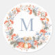 Elegant Monogram Wreath Dusty Blue Modern Classic Round Sticker