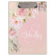 Elegant Monogramed Pink Watercolor Roses Clipboard
