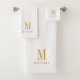 Élégant monogramme personnalisé en or noir script nom de serviette de bain ensemble. Rafraîchissez votre décor de salle de bain avec un style typographique minimaliste.