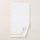 Élégant monogramme personnalisé en or noir script nom serviette de bain set bordures d'or sur blanc. Rafraîchissez votre décor de salle de bain avec un style typographique minimaliste.
