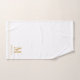 Élégant monogramme personnalisé en or noir script nom serviette de bain set bordures d'or sur blanc. Rafraîchissez votre décor de salle de bain avec un style typographique minimaliste.