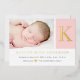 Ce modèle minimaliste et moderne, le faire-part monogramme initial pour bébé pour une fille, est la meilleure façon de présenter votre nouveau paquet de joie! Conçu à partir d'un stock de carte de qualité extraordinaire, ce faire-part classique est doté d'un élégant monogramme initial en feuille d'or véritable, vous permettant de le personnaliser avec la première initiale, les détails et la photo de votre bébé. C'est une façon intemporelle et élégante de partager vos nouvelles avec votre famille et vos amis. Ajoutez votre propre photo et recevez-la nette et nette de votre petite, ce qui en fait un souvenir qui peut être chéri pour les années à venir.