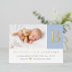 Ce faire-part de bébé photo monogramme de style moderne pour un garçon est la meilleure façon de présenter votre nouveau paquet de joie! Conçu à partir d'un stock de carte de qualité extraordinaire, ce faire-part classique est doté d'un élégant monogramme initial en feuille d'or véritable, vous permettant de le personnaliser avec la première initiale, les détails et la photo de votre bébé. C'est une façon intemporelle et élégante de partager vos nouvelles avec votre famille et vos amis. Ajoutez votre propre photo et recevez-la nette et nette de votre petite, ce qui en fait un souvenir qui peut être chéri pour les années à venir.