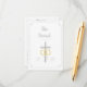 Design front features a customizable heading displayed in an elegant Nuptial font above the image of a silver-coloured cross with joined wedding rings. Monogram of bride and groom is featured in a slightly transparent Nuptial font. Design is framed with an elegant silver-coloured border.