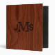 Classy, professional woodgrain look binder for executives- Mahogany woodgrain look background on front, back and spine. Three sophisticated, monogram initials in black. Change text colour, font, size, or add name, etc. Note: Wood is printed image. Appeals to many different tastes. There are so many other possibilities for this beautiful wood look binder, it boggles the mind- retirement guest book, photo album of milestone birthdays or anniversaries, and many more special occasions. Elegant, personalized gift for business executives and managerial types, or a unique gift for him. Matching mahogany wood look office supplies in our Zazzle.com/angela65 shop. Or visit for lots of other personalized binder books.