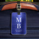 Elegant Monogrammed Navy Blue Brushed Metallic Luggage Tag