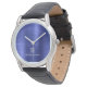 Elegant Monogrammed Navy Blue Brushed Metallic Watch