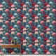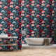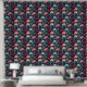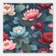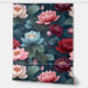 Elegant moody modern lotus flower pattern with dark and light blue, dark wine red and rose red, pink and white, and light and dark teal green jewel tones in a maximalist style design.