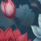 Elegant Moody Modern Lotus Flower Pattern Wallpaper