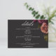 Embrace timeless elegance for your gothic-inspired celebration with our captivating wedding details enclosure card. A soft black background provides the perfect canvas for a captivating, yet understated bouquet. Imagine a corner arrangement of muted rose blooms, where soft rust blush and rich burgundy hues mingle with dark green foliage. This ethereal design exudes quiet sophistication, perfect for the couple seeking a touch of romantic darkness. Your wedding details are showcased in a modern font, ensuring they stand out beautifully. This enchanting design creates a truly unforgettable invitation for your special day, setting the tone for a moody and elegant celebration of love. Created by Simply Farmhouse Press.