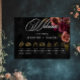 Embrace timeless elegance for your gothic-inspired celebration with our captivating wedding order of events poster sign with gold wedding icons. A soft black background provides the perfect canvas for a captivating, yet understated bouquet. Imagine a corner arrangement of muted rose blooms, where soft rust blush and rich burgundy hues mingle with dark green foliage. This ethereal design exudes quiet sophistication, perfect for the couple seeking a touch of romantic darkness. An elegant, vintage script announce your welcome, while your wedding details are showcased in a modern font, ensuring they stand out beautifully. This enchanting sign creates a truly unforgettable design for your special day, setting the tone for a moody and elegant celebration of love. Created by Simply Farmhouse Press.