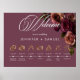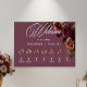 Embrace timeless elegance for your gothic-inspired celebration with our captivating wedding order of events poster sign with gold wedding icons. A soft burgundy background provides the perfect canvas for a captivating, yet understated bouquet. Imagine a corner arrangement of muted rose blooms, where soft rust blush and rich burgundy hues mingle with dark green foliage. This ethereal design exudes quiet sophistication, perfect for the couple seeking a touch of romantic darkness. An elegant, vintage script announce your welcome, while your wedding details are showcased in a modern font, ensuring they stand out beautifully. This enchanting sign creates a truly unforgettable design for your special day, setting the tone for a moody and elegant celebration of love. Created by Simply Farmhouse Press.