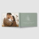 Designed to coordinate with our Elegant Botanical Moon and Stars wedding collection, this boho wedding guest book features a white line art illustration of a moon adorned with stars and foliage with a sage green background. Personalize the front of the moon wedding guest book with your names and date. Your horizontal engagement photo is displayed on the back of the guest book