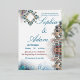 Bring timeless elegance to your special day with this Moroccan-inspired wedding invitation, featuring luxurious teal tones, soft gold accents, and intricate Arabesque patterns.