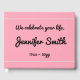 This simple funeral or memorial guestbook features the message "We celebrate your life,", and the personalized name and birth/death dates of the individual who has passed away. It could be used to record fond memories of somebody who has recently passed on.