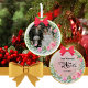 From the first Granddaughter to the third, each year I commerate a special moment in their lives with a Christmas Ornament. I have one tree dedicated to their porcelin photo ornaments. Some years it's just too difficult to pick one picture. I love being able to put two different pictures on the same ornanament. I hope to keep the tradition going for throughout their lives and onto the next generation. Printing is clear and sharp. Only slight issue with one of the three ornaments where the print is partially obsured because the hole for the hanger was cut through the writing.