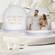 Wedding keepsake snow globe features a portrait of the bride and groom newlywed couple on the front with an elegant gold and white (colours can be modified) monogram of the married couple's first last name and wedding date that can be personalized on the back.