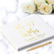Elegant white wedding guest book featuring "Mr & Mrs" in a large script, an illustration of two hearts joined together, and your first names and wedding date, all rendered in your choice of real gold, silver or rose gold foil. Personalize your title on the spine and add your favourite engagement photo on the back.