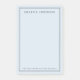 Elegant, light dusty blue or custom colour return sticky notes featuring your name in an elegant serif font and custom text at the bottom surrounded by a double border.