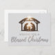 Share the true spirit of the holiday season with this beautifully designed nativity scene Christmas design. Featuring a minimalist silhouette of Mary, Joseph, and baby Jesus under a glowing star, this design delivers a heartfelt message, ‘Wishing You a Blessed Christmas.’ Perfect for sending warm and spiritual wishes to family and friends.