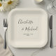 Elegant Natural White Script Minimalist Wedding Paper Plate