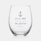 Elegant Nautical Navy Blue Anchor Wedding Stemless Wine Glass
