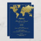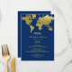 Elegant Navy and Gold World Map Custom Wedding Menu