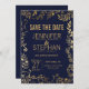 Elegant Navy Blue and Gold Floral Save the Dates Invitation