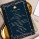 Elegant Navy Blue and Gold Graduation Party Menu Invitation