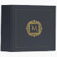 Handsome all purpose Avery three ring binder done in a navy blue, with gold accent frame, on the front. A gold tone decorative text area, on the middle front of the binder, has a single letter monogram ready to personalize. Great for business use or as a family photo album. All pages and inserts are sold separately.