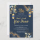 Beautifully detailed golden lanterns (fanous) and ornate crescent moons hang gracefully from the top, complemented by delicate gold line-art botanical leaves. With its clean, dark center, your event details will stand out with clarity and elegance. This template is perfect for Iftar dinner parties, Eid celebrations, or any upscale Islamic event.