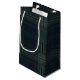 Modern Christmas gift bag featuring a timeless design with a muted navy blue and green plaid pattern.